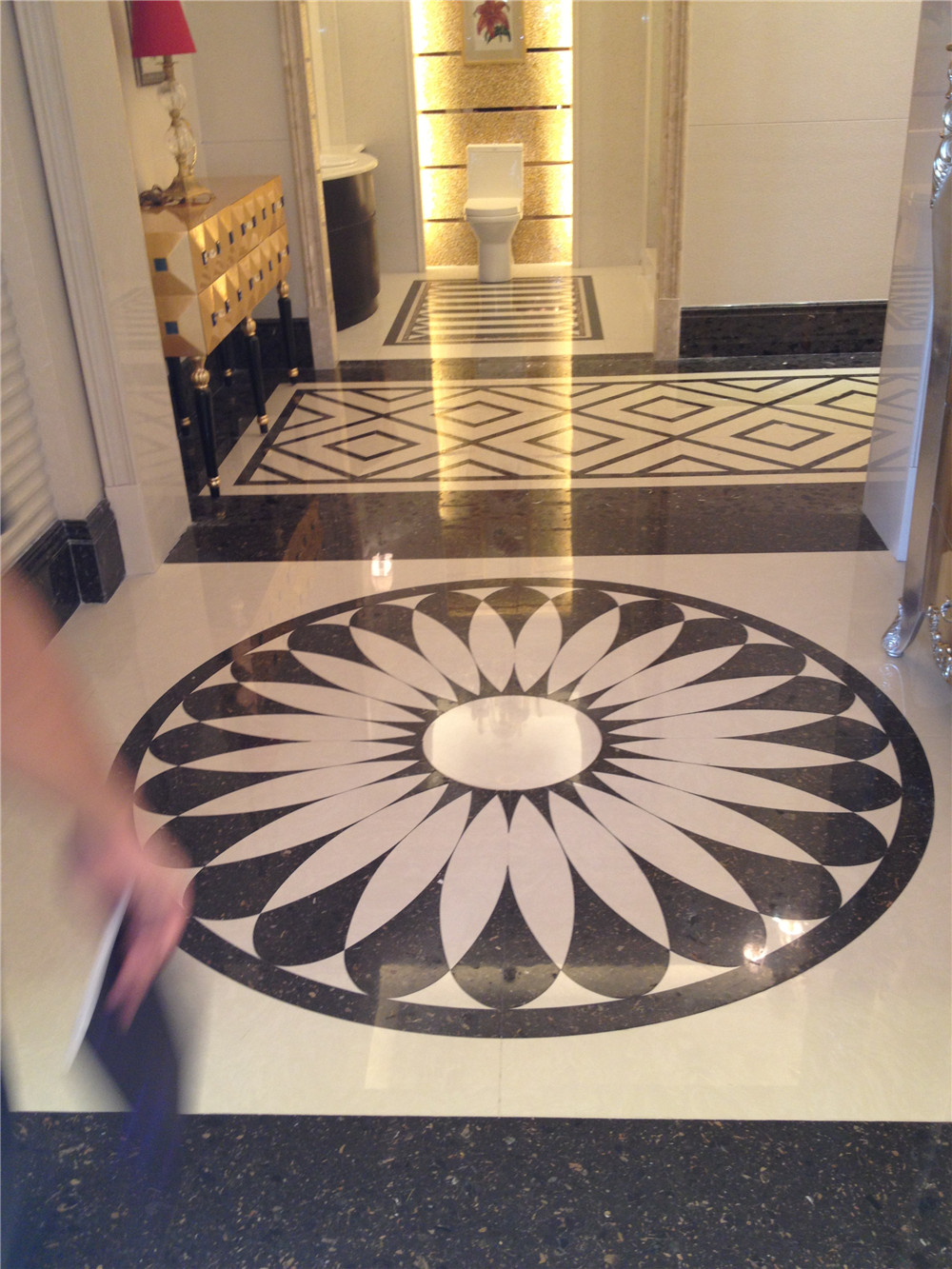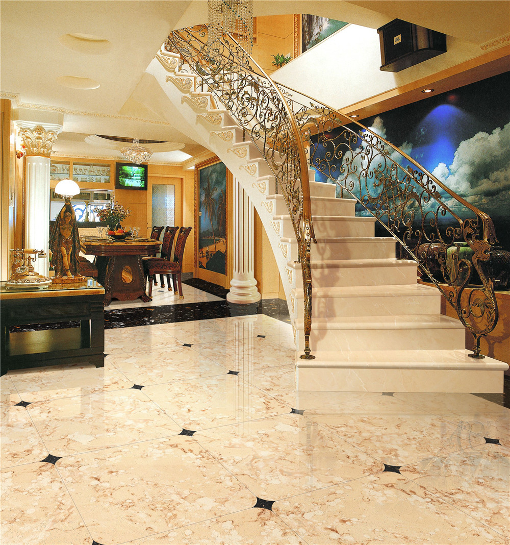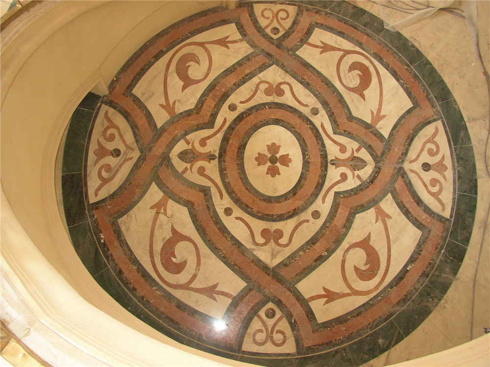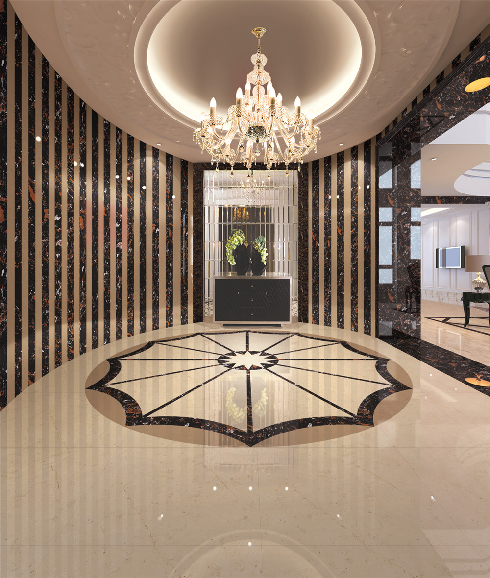 鋪裝石材、瓷質(zhì)磚時必須(xū)安放標準塊,標準塊應安放在十字線交(jiāo)點,對角安(ān)裝。